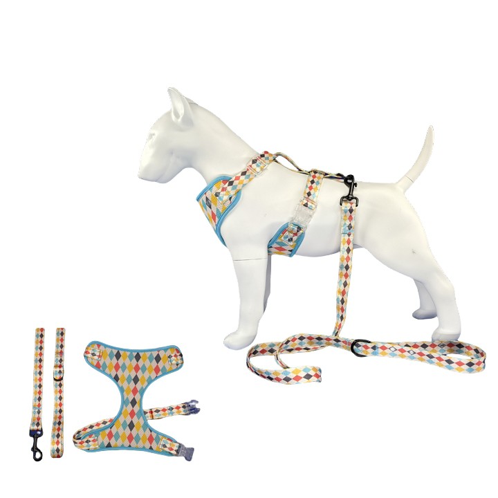 Mae gan harnais ci rhwyll wedi'i argraffu 3 maint, a leashes cŵn cyfatebol.