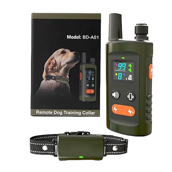 Mae teclyn rheoli o bell llaw â sgrin arddangos; Mae gan dderbynnydd coler ddangosydd pŵer a golau statws gweithio